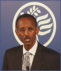The president was invited to Germany by the Frankfurt Stock Exchange company. Kagame gave a lecture to German business people Monday evening. He did not meet with German officials. Berlin says his visit is legally a private one.